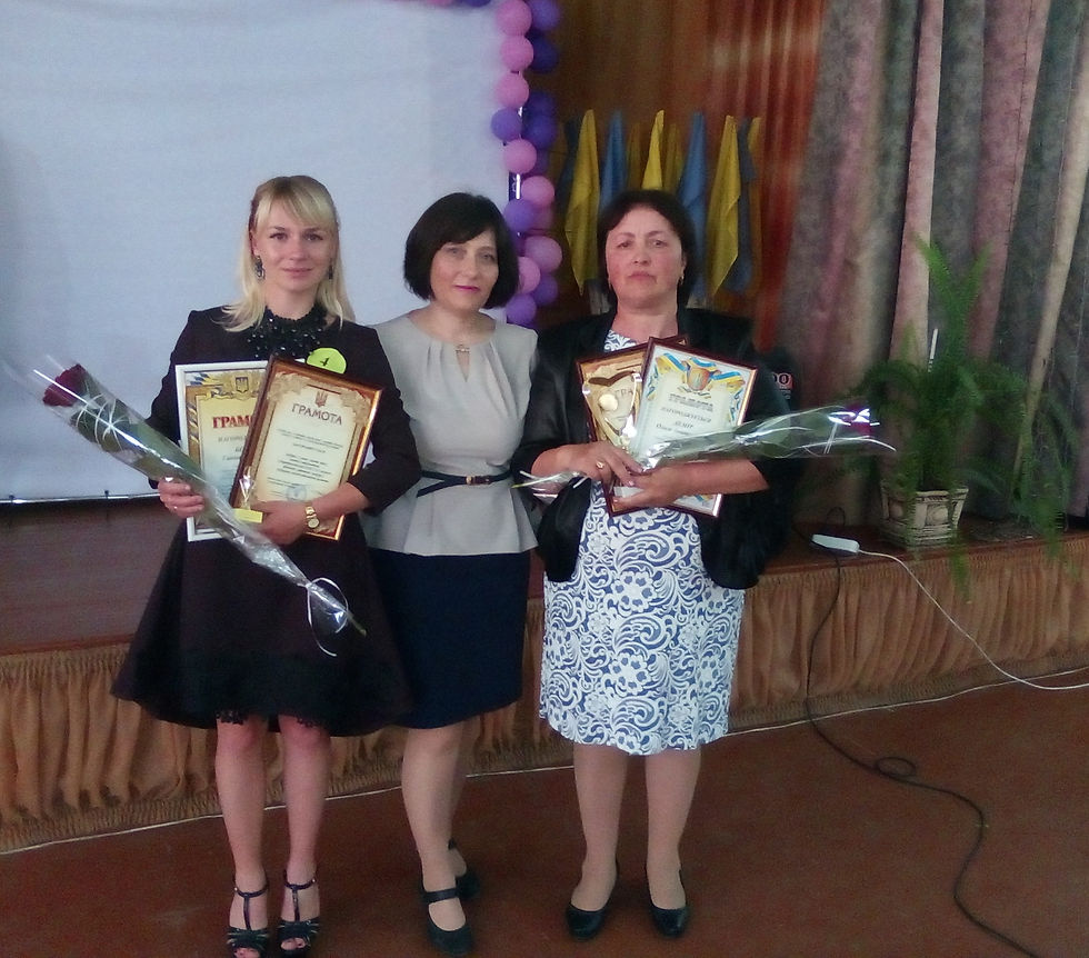 Заключний конкурсний тур передбачав творчий конкурс: для молодих педагогів – написання есе згідно витягнутої листівки з темою, а для старших педагогів – створення презентації для демонстрації власного досвіду роботи та педагогічної діяльності. Наші вчителі добре впоралися з поставленими перед ними завданнями та були нагороджені грамотами відділу освіти та молодіжної політики Кілійської районної державної адміністрації та Кілійської районної ради. Урочисто нагородив і привітав фіналіста Бойко Г. Б. та переможця конкурсу Демір О. А. начальник відділу освіти та молодіжної політики Мергут Сергій Іванович та від імені голови Кілійської районної ради Павла Івановича Бойченка привітала керуюча справами Браїловська Тетяна Михайлівна. Також вчителів привітала голова профкому Бойченко Тетяна Олександрівна.